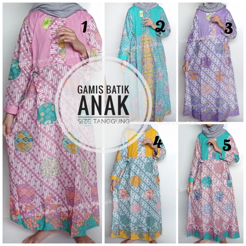 Produsen Fashion Bayi & di Kabupaten Ende Gamis Batik Anak Xxl Size Tanggung Warna Cantik Anak Perempuan 12,13,14 Tahun Bahan Katun dari Griya Batik Bimi Kota Depok