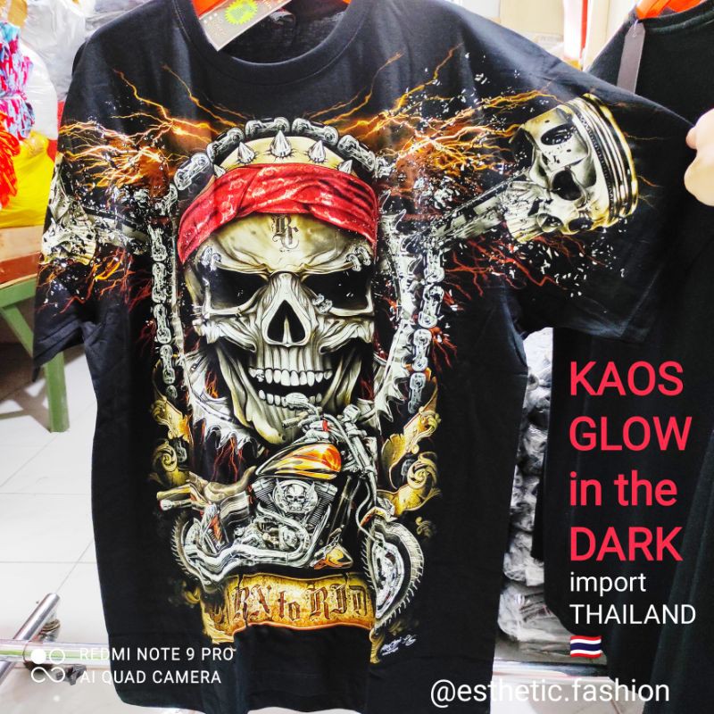 KAOS GLOW IN THE DARK COWOK KAOS METAL KAOS BAND METAL BAJU METAL KAOS HARDCORE KAOS TENGKORAK PRIA KAOS MOTOR HARLEY DAVIDSON MOGE